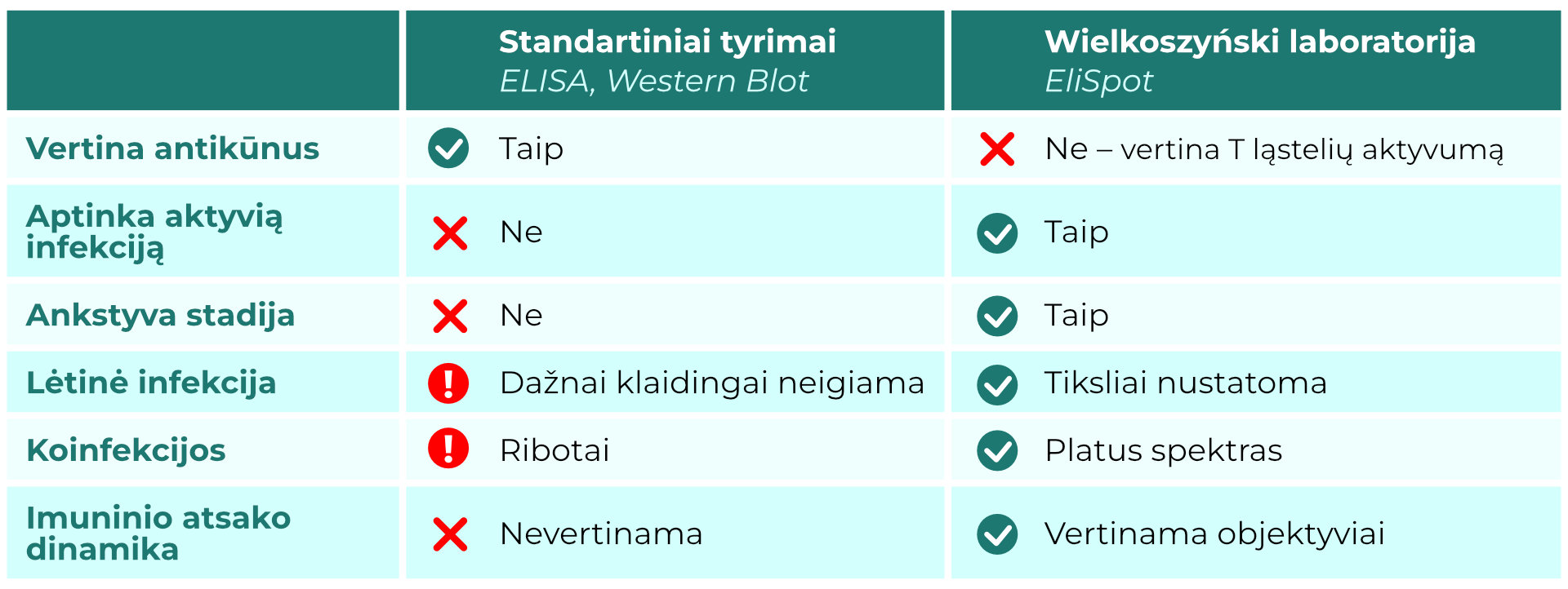 Kadangi T ląstelės suaktyvėja anksčiau nei antikūnai, EliSpot leidžia aptikti infekciją anksčiau, kai standartiniai testai dar nerodo pokyčių. Tai itin svarbu, kai simptomai jau atsiranda, bet serologinė diagnostika vėluoja.